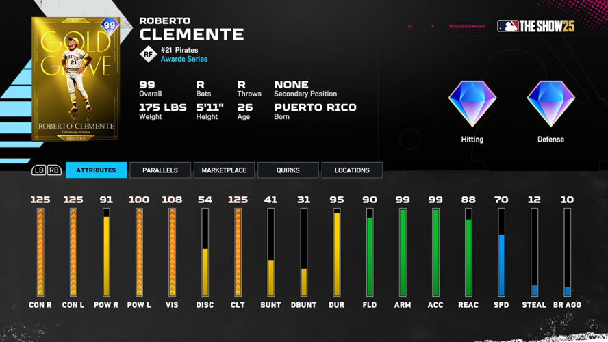 Achieving the Roberto Clemente Day Program unlocks a highly coveted milestone card celebrating the legendary Pirates outfielder’s 1961 Gold Glove-winning season. This card boasts impressive attributes that reflect Clemente’s exceptional skills on the field.
